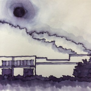 Sketch above of our studio window view on a rainy grey day on