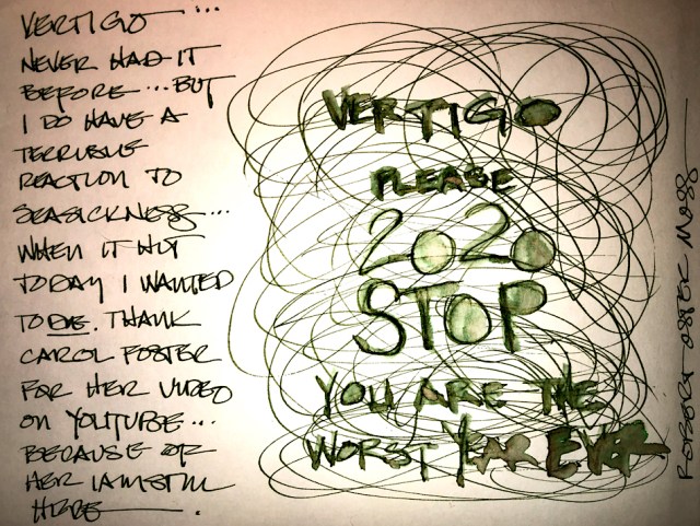 Seriously, I’ve had a bout of dizziness before but this was retching horrid and I wanted to die. Begged for it and told Mitchell I was done if we could not make this spinning vomiting stop… I also have sever seasickness and so, spinning combined with tossing my very good breakfast. I was sketching and watching Fisherman’s Friends (good movie recommend) when it hit and it flattened me.