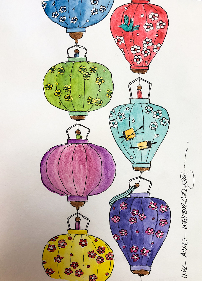 An assortment of L’Artisan Pastellier Classique inks were used.