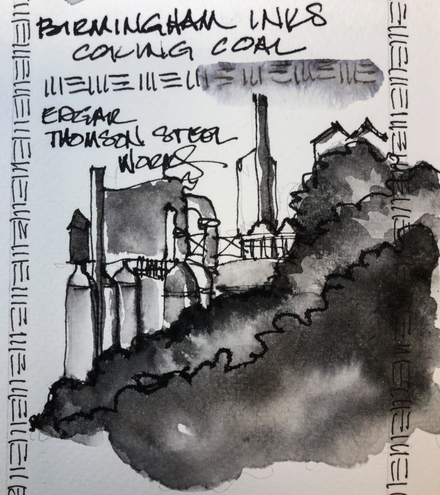 Birmingham Pen Company Coking Coal ink is named in honor of coking coal, a unique coal which “usually refers to the product derived from low-ash and low-sulphur bituminous coal by a process called coking.” Coking is “the heating of coal in the absence of oxygen to a temperature above 600 °C to drive off the volatile components of the raw coal, leaving a hard, strong, porous material of high carbon content called coke.” In this case made at and for the Edgar Thomson Steel Works, founded in Pittsburgh in 1872. (Quotes from Wikipedia.)