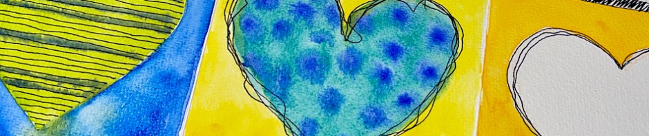 various inks, and Sennelier, Holbein, and Daniel Smith Watercolors.