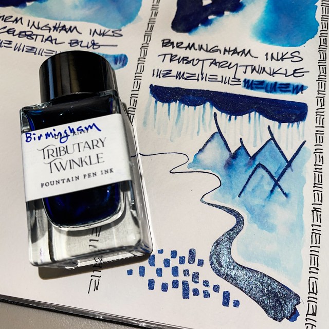 These inks are Mitchell’s favorites. He loves shimmery inks, and Tributary Twinkle