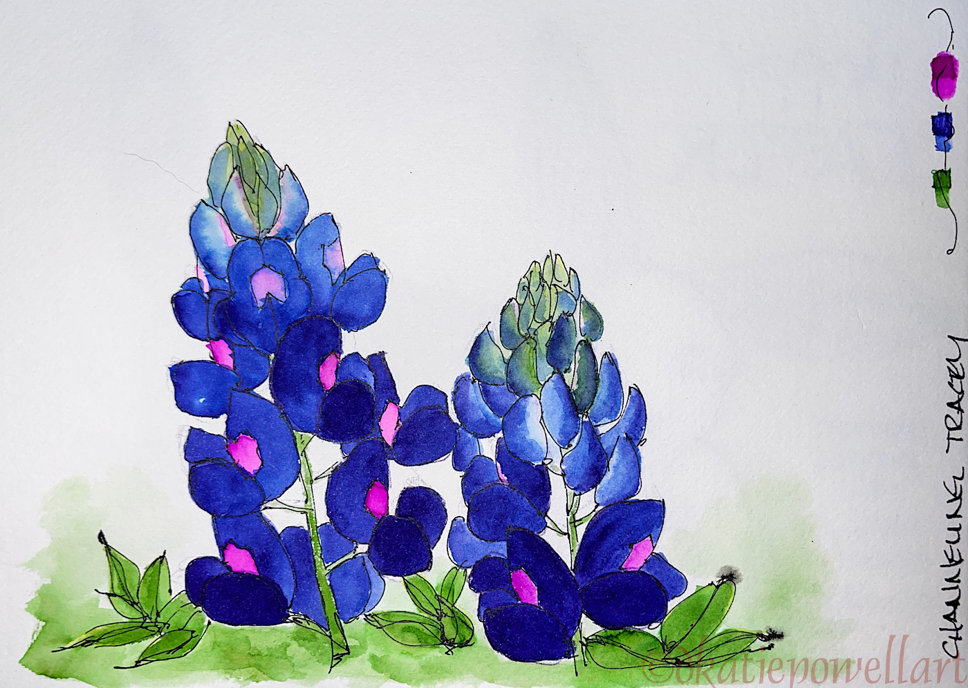 evidenced in my chocolate bunny sketch in Robert Oster Chocolate ink, above, and lupines, below.