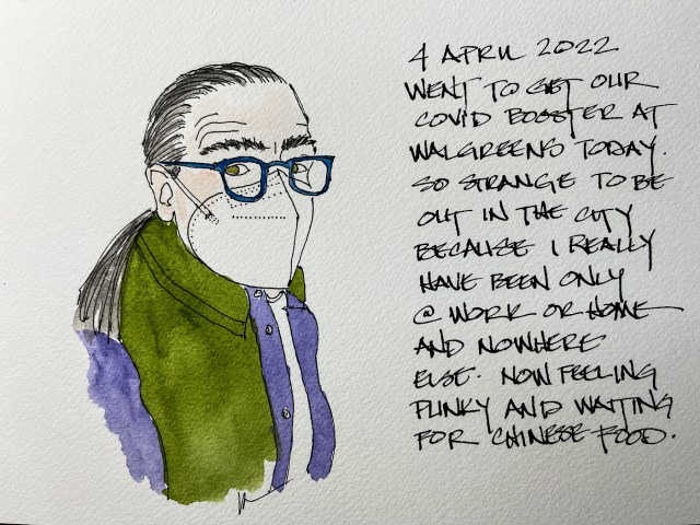 I did a sketch of Mitchell when we were out getting our boosters, above.