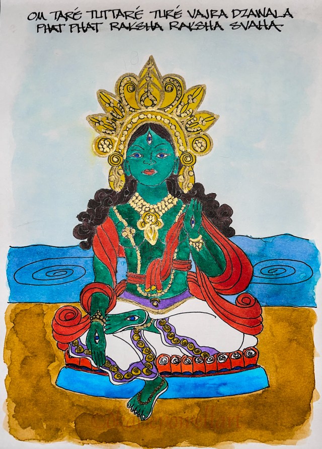 She got a bit dark fast with the inks, and then I tried laying in a gold pen after.