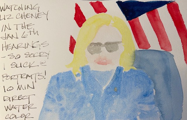 Day 12: Watching the hearings. Hate this one, Liz Cheney. 10 minutes.