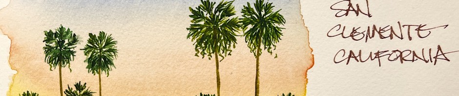 Creating the graduated wash of the sky was the challenge for me, and I love palms and keep exploring them… FASTER! 45 minutes including drying time.