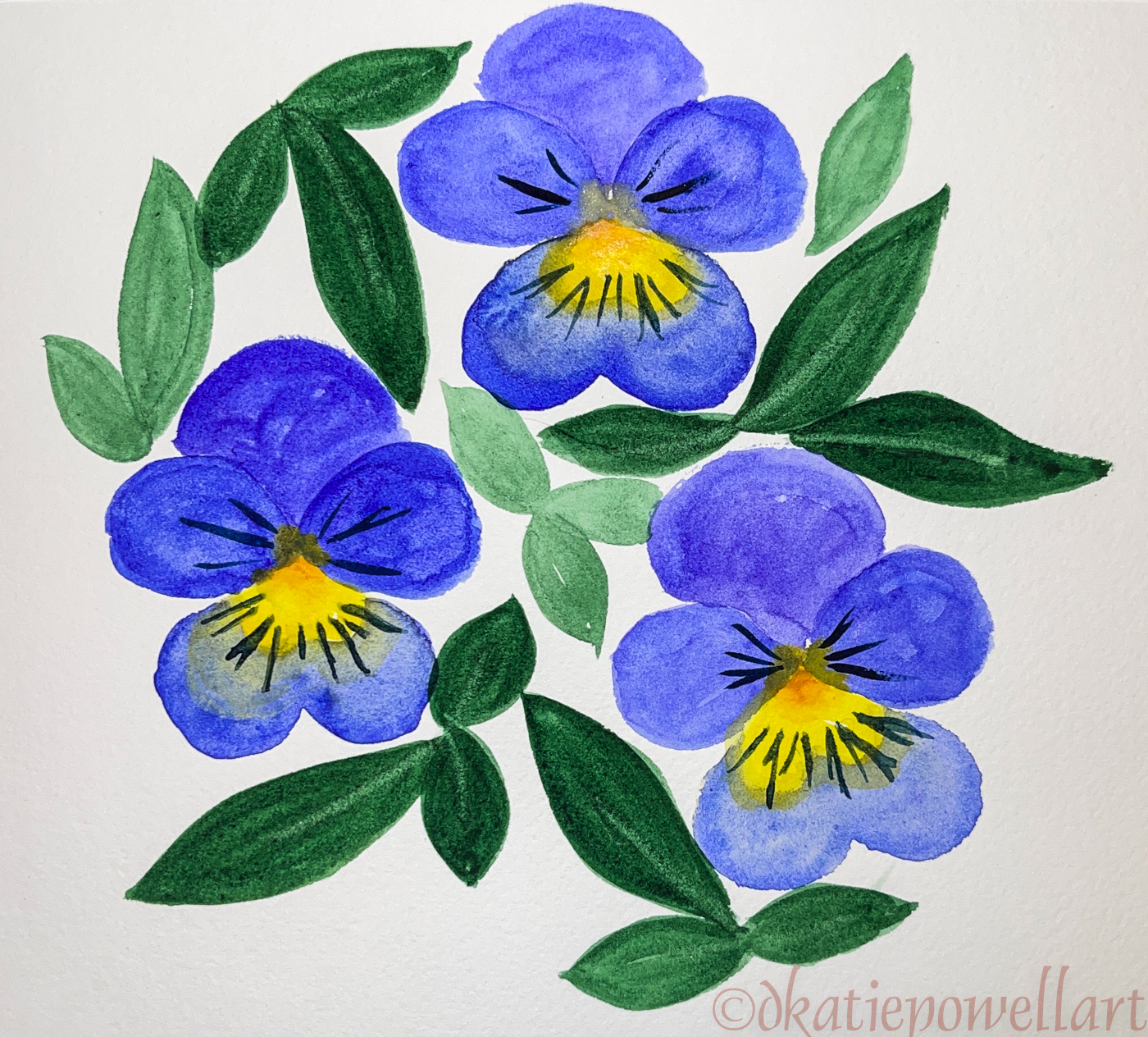 Day 16: Now I am feeling a little stressed, as I have little time. I may just do very fast flowers… Late at night! There is always a good deal of practice in any of these even unsuccessful sketches… In these pansies I went back in and this is always a disaster with watercolor but dang I keep trying.