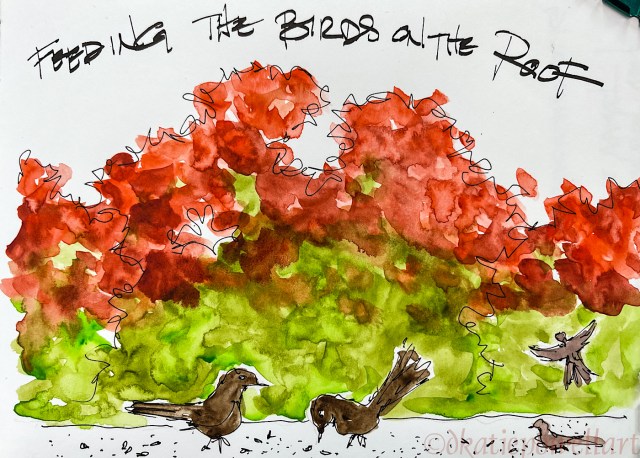 (the small birds use the Van Dyke). We feed the birds off the roof of the garage in our building, and this is the bird’s eye view during autumn!