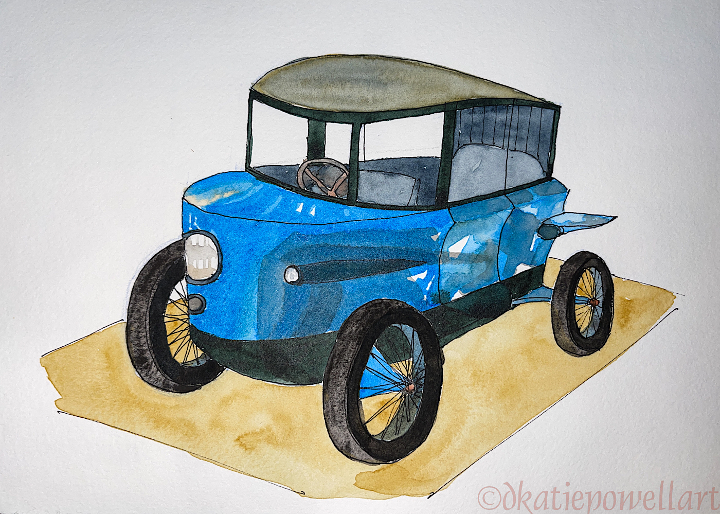 It needs to be about three feet longer, and so as it is it looks like a sister to the VW Bug! Very tough sketch with the various reflections and shadows… and I insanely tried to do them and got lost along the way.