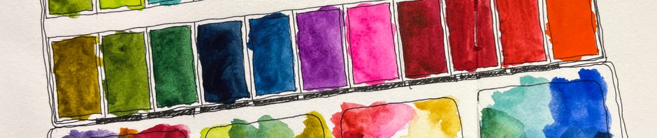 I bought new colors, the first I’ve bought in a long time, from The Merri Artist, an Oregon company. (I like supporting small businesses whenever possible.) Above, the new palette colors from Holbein and Daniel Smith. I have never bought many cadmium colors so tried a couple of those.