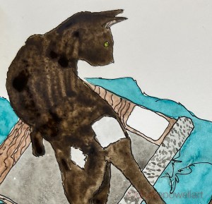 But the thing was the streaks!!!! Crap where did they come from? I use watercolors a LOT in my Nostalgie but this was just toooo much for the paper, apparently. (In the second image above I didn’t even let it dry, which is why you see white shiny streaks — reflections. It was just too horrid!). I walked away from the sketch for awhile.