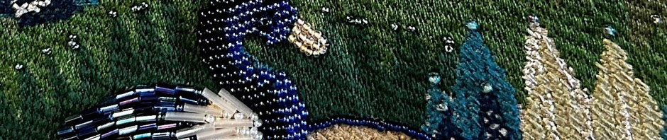 This was beaded on a scrap of upholstery fabric. It made the beading go slowly due to the thick backing — might not do THAT again. But I love the image and it turned out nicely IMO!