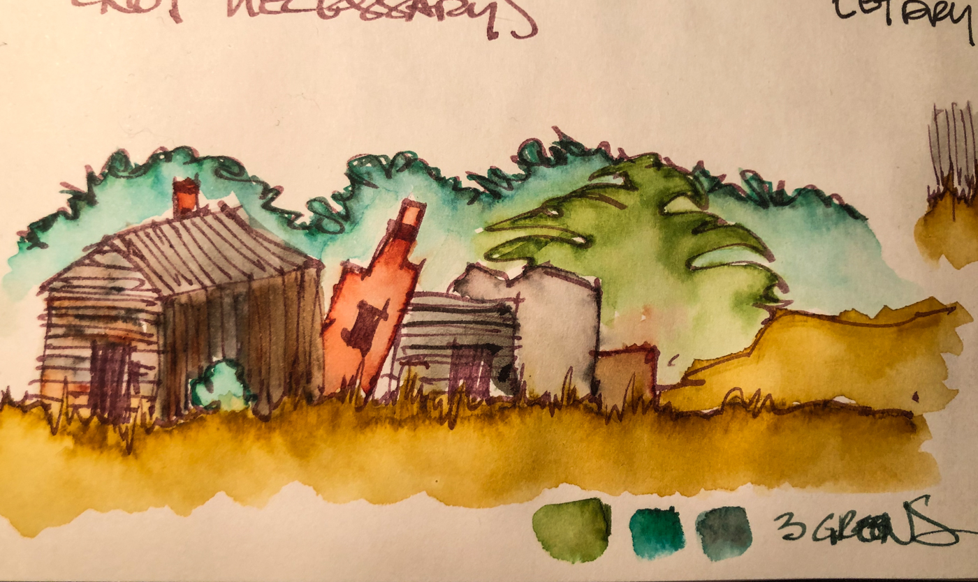 Lamy Vista with Robert Oster African Gold ink and a Pentel Aquash waterbrush.