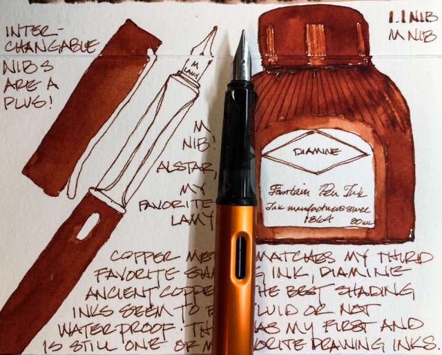 I continue to forget ahead of time to choose the right paper, very important in watercolor. I start an image in a smooth-textured sketchbook and am sorry when I decide the image is going to need washes of color, which are better on thicker textured paper. I am lazy about switching out to a watercolor sketchbook or pad.