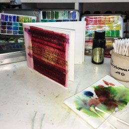 A second test was on green painted paper to work the colors again, over green.