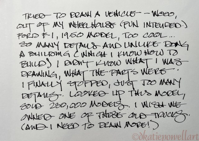 I simply continue to sketch and later may come back and write this or that on the facing blank page… mostly I am writing notes about color or impressions.