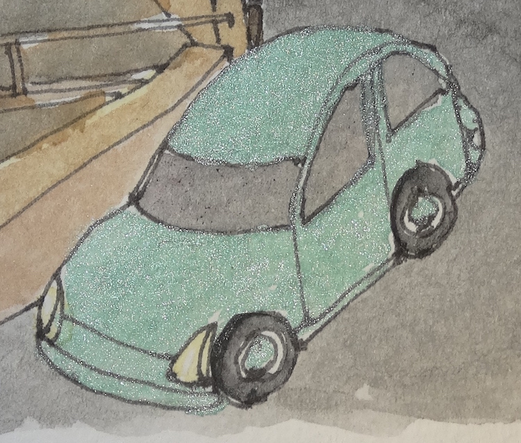 Sometimes I fill my Pentel water brushes with liquid watercolors, shown below and #1, #2, #5, and #6, above. They can make teeny lines then drop lots of watercolor in a big blob and they have more control than the commercial pens. And better color. NOT waterproof, mine all use liquid watercolors and become custom color brush pens!