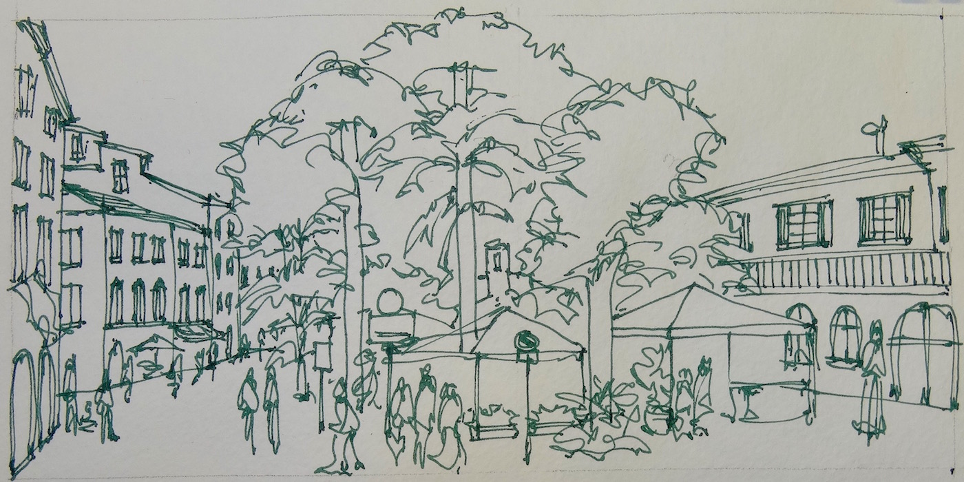 sketch on a printed view. I looked at a corner first that had nice memories for me,