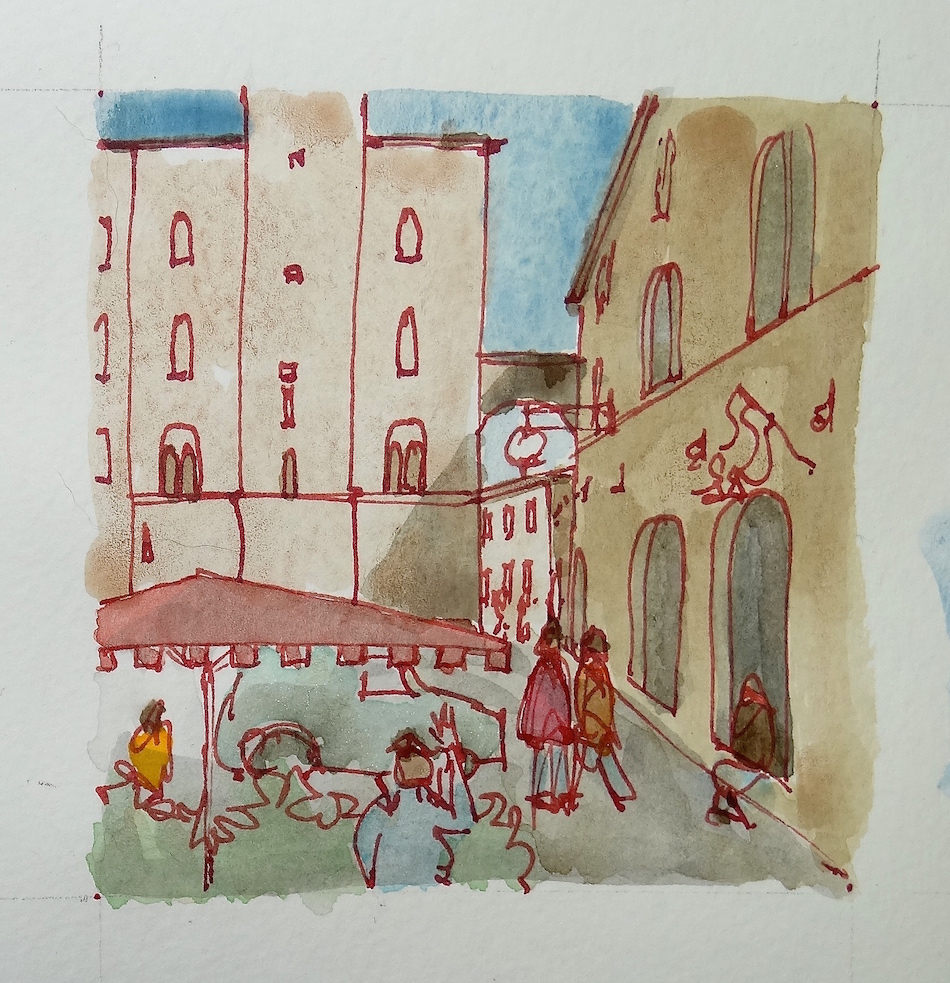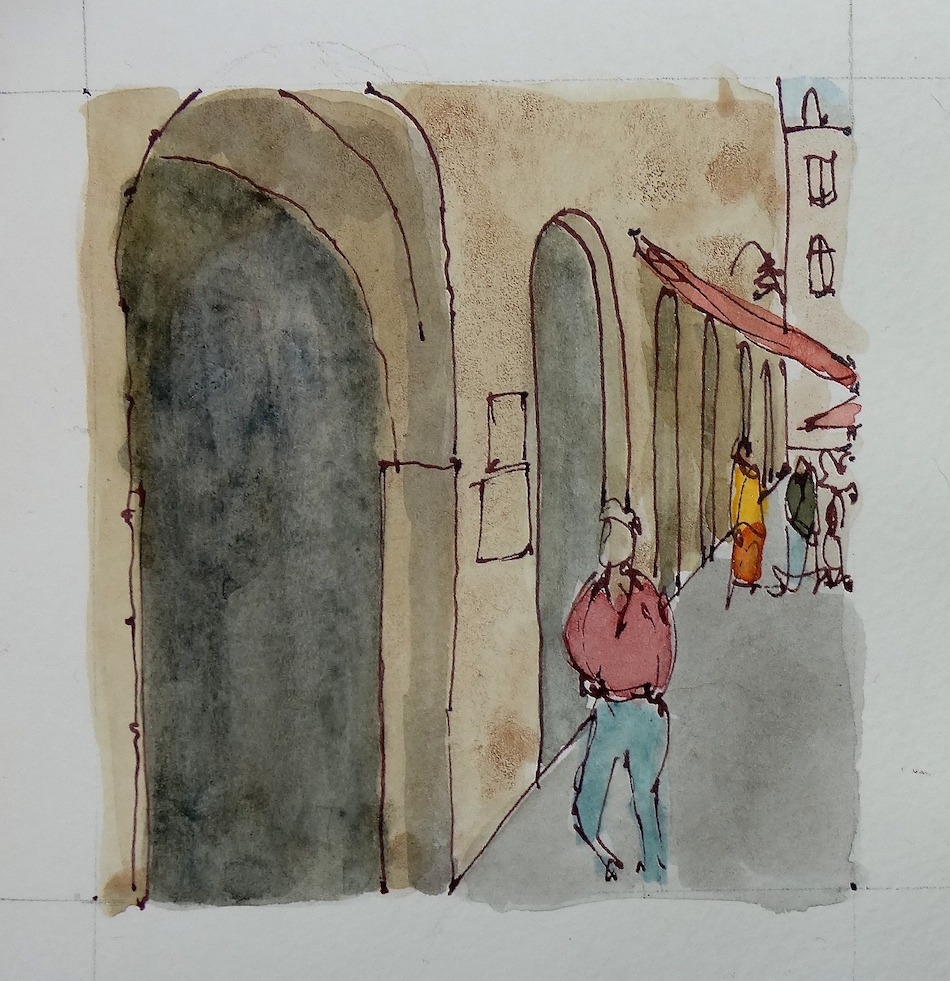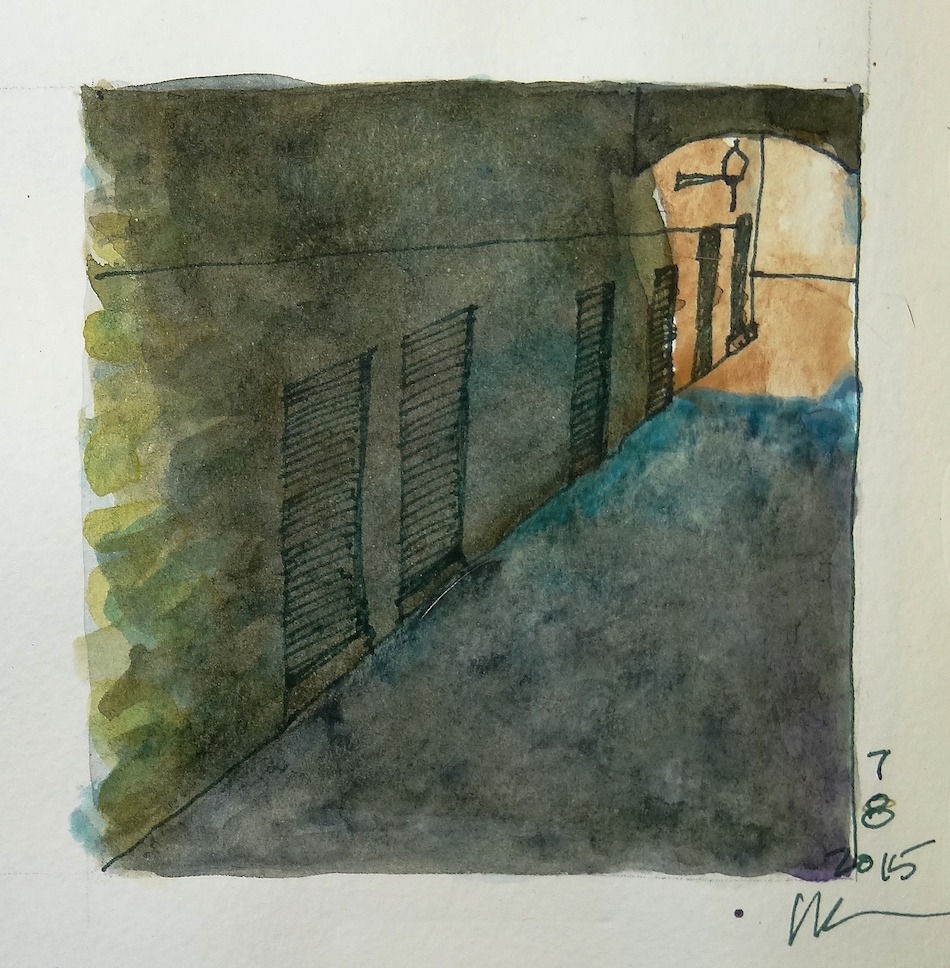 The watercolors led to pen and ink.