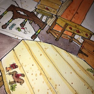 This is a very small journal I did around Christmas when we delivered a project of conserving the Gothic Sofa for Hearst Castle in California. My actual job is as a partner in our firm which restores antiquities.