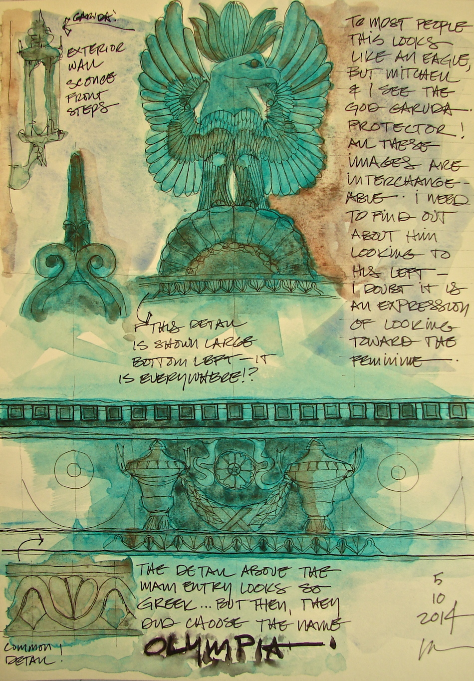 We were on location for off and on for weeks treating the walls of two State Senator’s offices in the Washington State Legislative Building. Because I sketched so many sketches on my down time (waiting for employees, shellac or for Mitchell, minutes stolen here and there) in the most beautiful buildings, I decided to dedicate a page to them. There will be more, as we love the buildings and we will visit again.