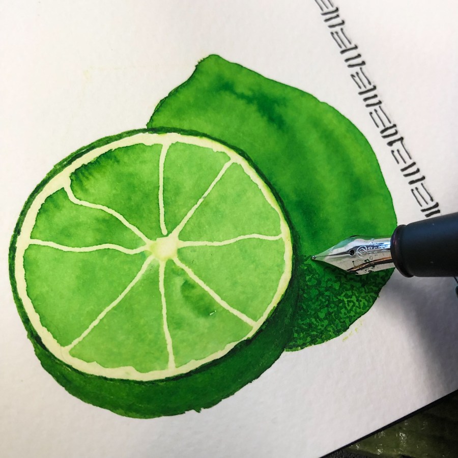 Inky lines for details over wash.